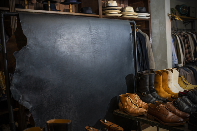 様々なマテリアルをご用意しておりますが、このように一枚革を御覧いただきますと、その躍動感と厳かさをより直接的に感じていただけるだろうと思っております。
