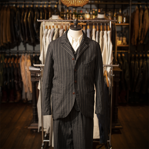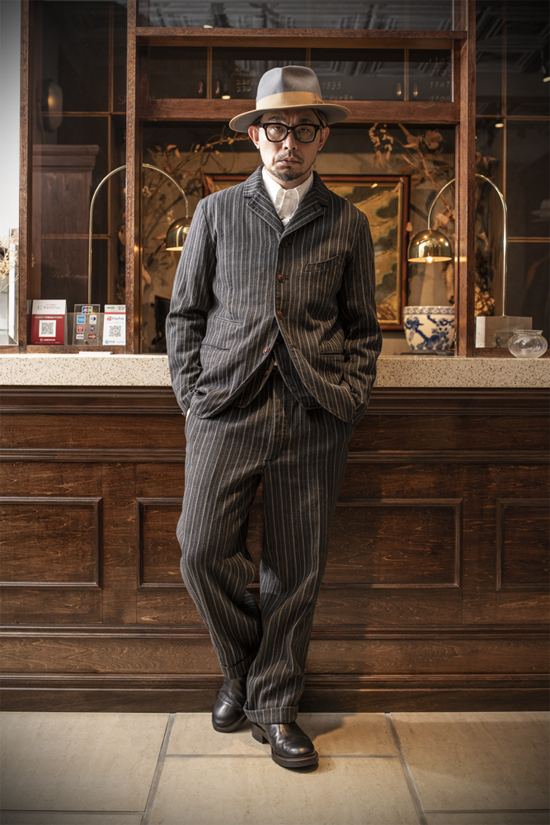 コットン100%で再現した1930年代のスーツ地は、着用してみると着心地の軽快さに驚きます。