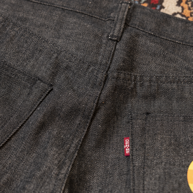 好みが分かれるところかと思いますが、完全にブラックアウトされたブラックデニム然とした一本に仕上がっておりますね。