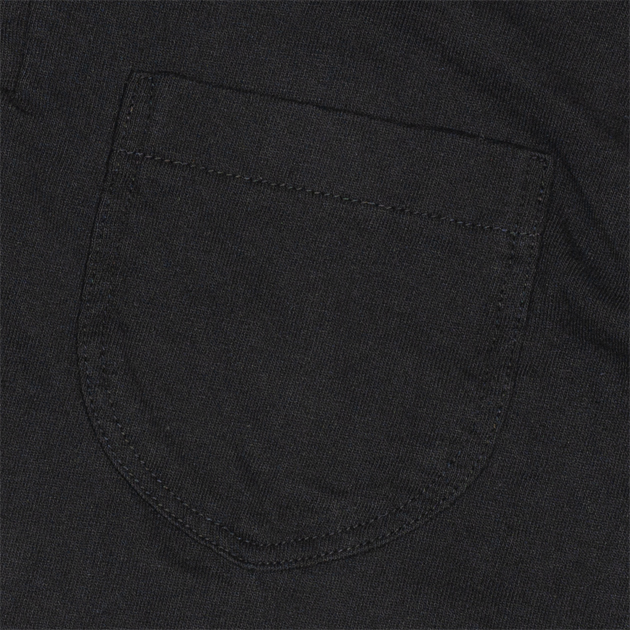 この製品はカットソーであることで「カットソーの技術」で製造することはもちろんですが、スタンドカラーとラウンドポケット創りを布帛技術にて構築しています。