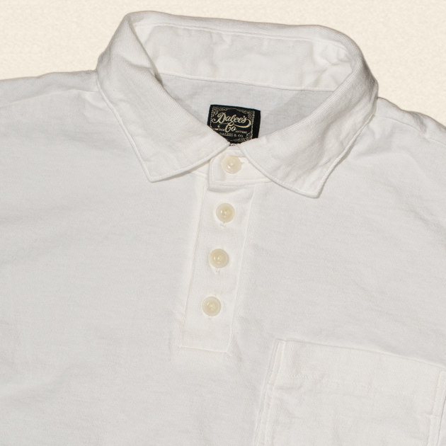 先日もブログで着用画像で掲載いたしましたが、デラックスウエアのポロシャツはハードタイプのTシャツと同生地のため、12.5oz吊天竺を使用したガッシリ編み上げた仕様となってますので、デラックスウエアのポロシャツをお持ちの方は、こちらのアイテムを持っていると、その日の気分で使い分けが出来そうですね。