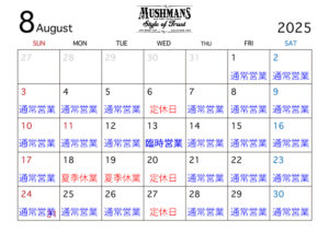 MUSHMANSでは、明日8月13日(水)は通常定休日である水曜日ですが、皆様がお休み期間中という事で『臨時営業』いたします。