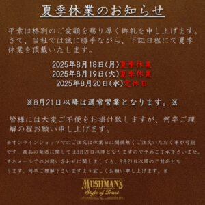 8月18日(月)〜20日(水)に渡りまして、夏季休業をいただきました。