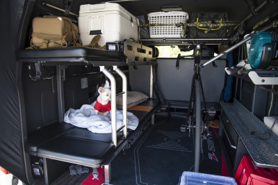 ロードバイクを積んだまま、疲れたらベッドで寝られるし、にいなも寛げるのが良いですね。