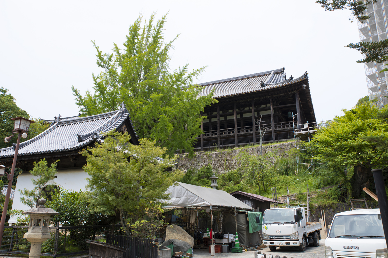 豊臣秀吉が戦没者を弔うため、千部の大般若経を納める堂宇として建立を命じたもので、天正15年(1587年)に着工されました。秀吉の死により未完成のままとなりましたが、その広大な建築は今も壮大な迫力を伝えています。