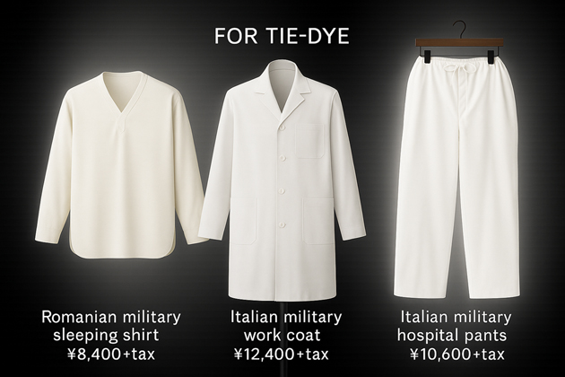 また、タイダイ染めのベースにしたら良いかな?と個人的に思ったヴィンテージミリタリーアイテムをご用意しております。↓↓