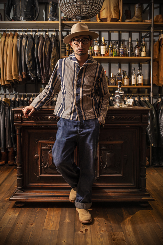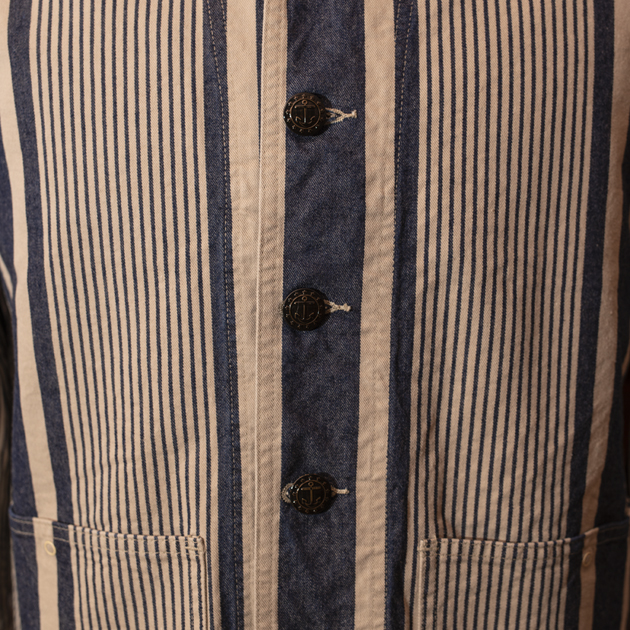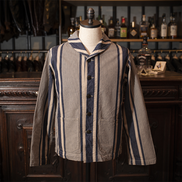米海軍(U.S.N.)のヒッコリーストライプ柄デッキジャケット(カバーオール)を、DALEE'S&Coらしいアプローチで構築した一着です。