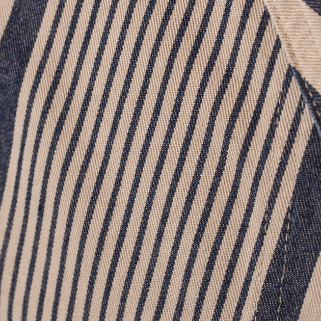 だから、あまりMUSHMANSではヒッコリーストライプ柄のアイテム少ないんですが、これはストライプの太さを異形にしたDALEE'S&Coオリジナルファブリック。