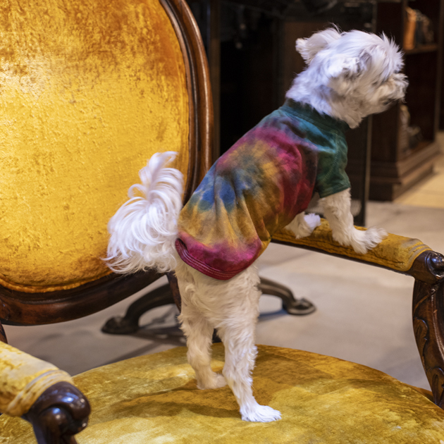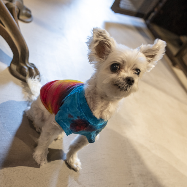 という事で、ヒッピー犬用タイダイウエアも承ります。