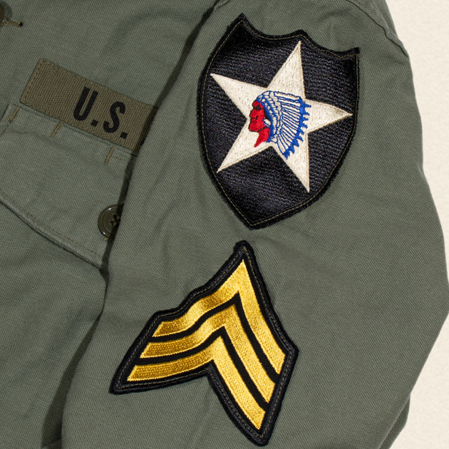 当アイテム"SHIRTS MAN'S COTTON SATEEN OLIVE GREEN SHADE107"は1960年代中期、韓国に駐留した米陸軍第二歩兵師団に支給された物。