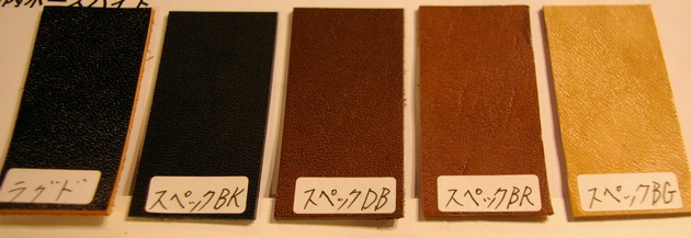 今回特別色として御用意いたしました[Hand dyeing BLACK]は、上記画像の右から2番目に写っております「スペックBR」という色に、エレクトリックレザー近藤氏が直々に手染めにて染色を行うカラーです。