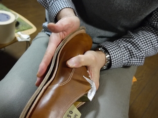 このような感じで、中底を詰め本底を接着までの工程が完了致しました。
