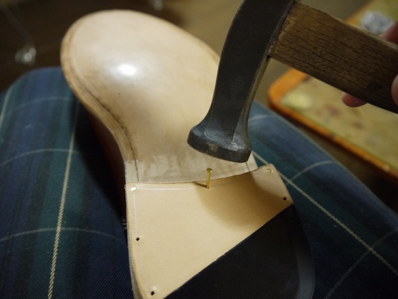 この、化粧釘を打ち込む事により、完成度を上げるだけでなく、釘が打ち込まれる事でヒールの一体感が増し、丈夫なものとなります。