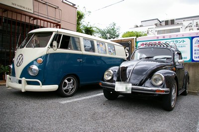 Rainbow Country 三好氏のVW T-2も、ヘッドライトは寝むそうな目をしてはおりますが、元気にはるばる越谷まで参上していただきました