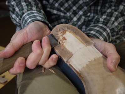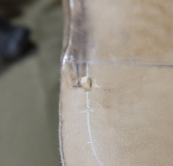 ヒールラインが出来たら、次に『木釘』と呼ばれる木製の釘を打ち込みます