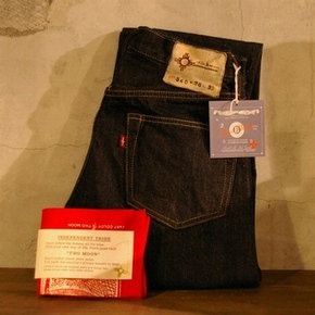 生地にはメンフィスコットン単一綿。経緯共に約6番の糸を使用し、色落ち、履き心地共に申し分ない。