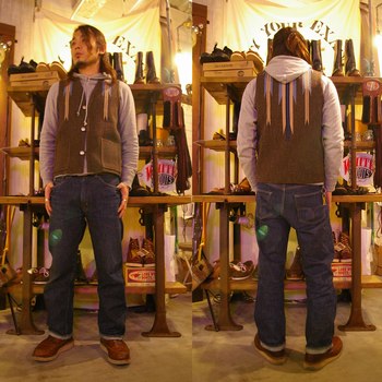 フラットボトムタイプにポケットを装着、ボタン数を3つに指定した 完全MUSHMANS特注仕様です