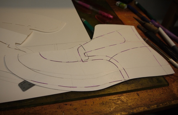 全体的に修正を加え全部のパターンが変わっているのですが、頭パーツはグレーディングの際につり込みしろやモカデザインが要となる部分なので、念入りにデザインを決めていきました。