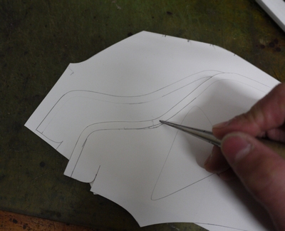 その、ちょっとしたデザインの誤差を修正し、仮アッパー作製後の最終パターンが出来上がりました