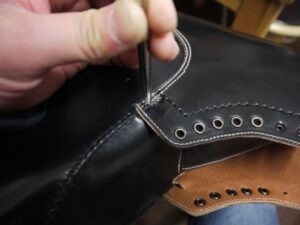 また、緩やかな曲線を描くポケットのデザインや裏側のホワイトのパイピング等、細部まで拘った仕様。