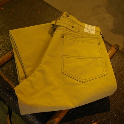 生地にはNigel Cabournによって現代に蘇った、今作のWORK JEANにはコットンで編み込められた綾目の目立つHARD DRILLを使用。