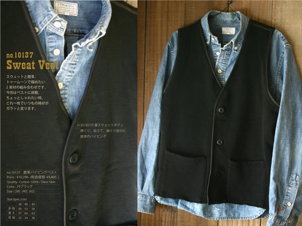 スウェットと鹿革といったTwo Moonの代表的な2素材を組み合わせたベストを製作