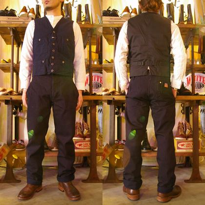 染色はインディゴ染めを採用する事により、色落ちを楽しむ事が出来、着込む毎に雰囲気の出てくるVESTとなっている。
