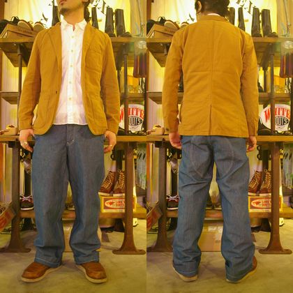 このジャケットは、ブラウンのダック生地で製作されている為、様々な着こなしが期待出来る一着となっております
