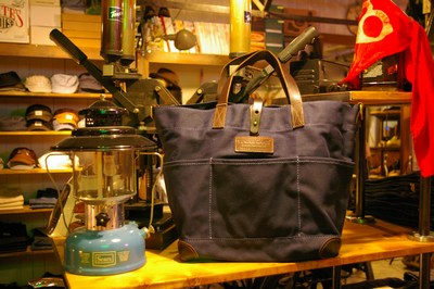 Made in USA. WAXED TOTE BAG[SC01994]BROWN/NAVY