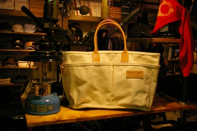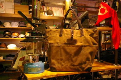 マテリアルにワックスコットンを使用したTOTE BAG。