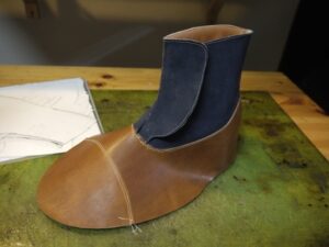 今回は、今までとは違って、ボタンブーツというデザイン上足首を包み込むものの為、パターンが今までの応用とはちょっと違う考え方も必要になってくるという事を身を持って経験させていただきました。