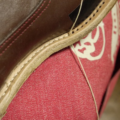 唯一違う所と言えば踵部の処理方法がシングルとは違い、ダブル一周丸々出し縫いを行うかたちになります