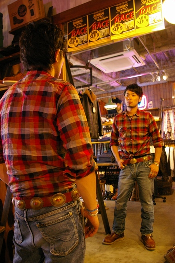 聞くと、ヴィンテージディーラーでもあった氏が発見したヴィンテージ真鍮製コンチョを自身のギャリソンベルトに取り付けただけという事。