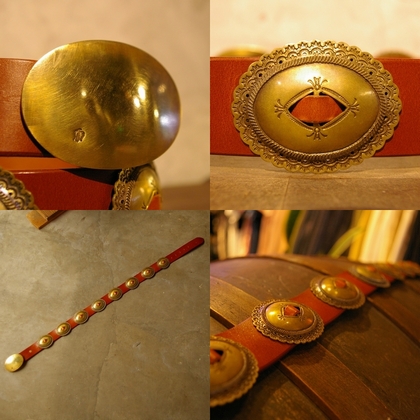 ヴィンテージのBrassコンチョをモチーフに、迫力がありながらもエレガントな雰囲気を発する大人のコンチョベルトを制作しました。