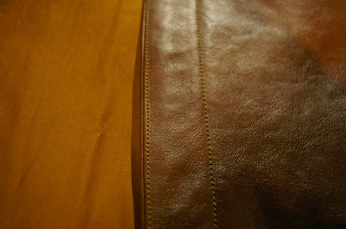 レザーの色味は勿論の事、こういったコントラクターによる違いもA-2を楽しむ一つの要素です。