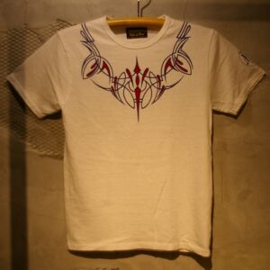 このシェイプされているデザインにより、ジャケットを羽織って前開けで着用した際にも綺麗なシルエットを出す事が出来るといった特徴を持ちます