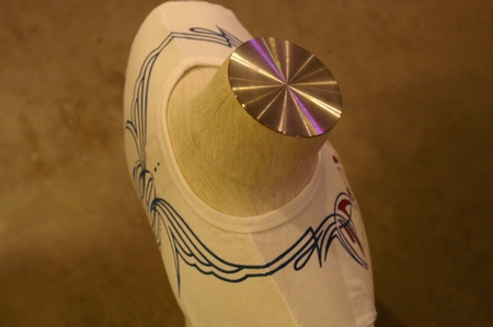 T-Shirtsのネックホールを中心に、前後に流れるデザインをと・・・ 最初は何のことやら、といったような反応だった岩城氏も、数回の打ち合わせを重ね 素晴らしいデザインに仕上げてくれました。