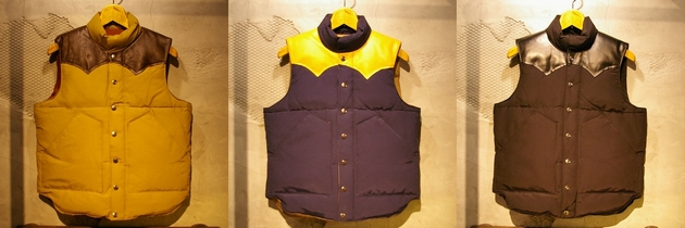 それぞれ異なった組み合わせのレザーとロクヨンクロスのダウンベストとなっておりますので、お好みやコーディネートに合わせて使い分けてみては如何でしょうか