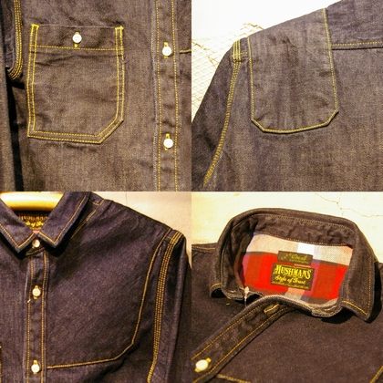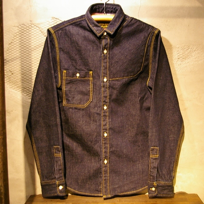 12ozの通常Shirtsには使用しない極厚のデニム生地は、着用する者へ挑戦的な生地感であり。