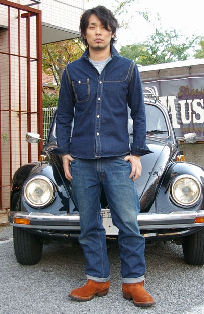 極厚のデニム生地を使用しておりますので、こんな感じのシャツジャケットスタイルにもハマりますね