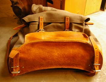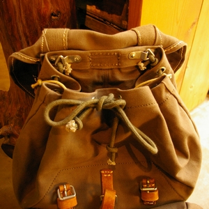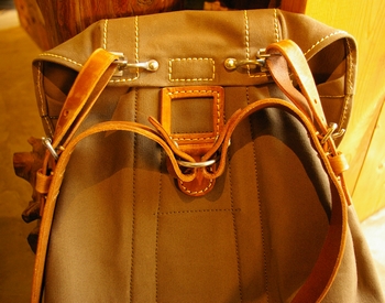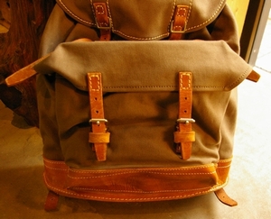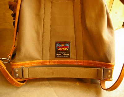 ファブリックには20oz.ミリタリー・コットン・キャンバス&サドルレザーを使用し耐久性に優れた素材を使用している。