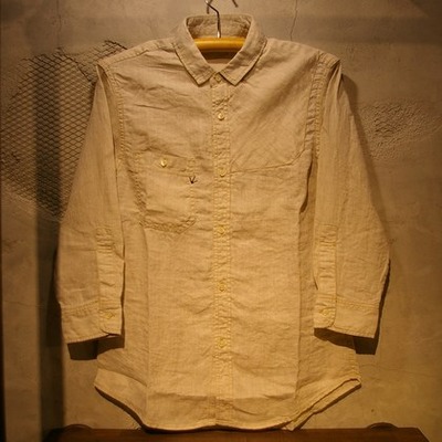 爽やかな印象の生成り色の麻素材をタフなディティールのガンパッチシャツに落とし込みました。