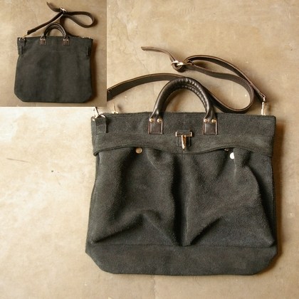 表革を使用した、しっかりした雰囲気のヘルメットバッグも とても良いですが、カジュアルな着こなしにもマッチしやすいラフアウトレザー仕様もひとつおさえておきたくなりますね