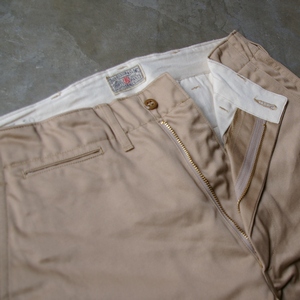 当時のミリタリーチノは、シルエット太目のものが多く存在しましたが、このモデルは、現代にも穿きやすいよう当時よりやや細く仕上げております