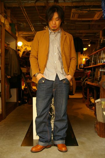 細めのウエスタンシャツに太めのPANTSを合わせる事で、よりラインが強調されます