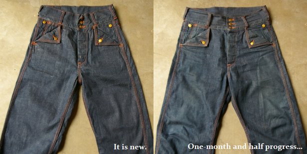 また、薄手の生地の為、腰部分に皺が入りやすく、これも色落ちしていくといった楽しみがある部分です。