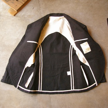 1800年後半から1900年代初頭に沈没した船から引き揚げた洋服を表現すべくデザイナーの手で染めや揉み洗いを行う拘りと独自の美しいパターンで世に生み出すブランド"COPANO"とJELADO "ANTIQUE GARMENTS"のダブルネームにより、1900年代アメリカの洋服の貴重な資料を参考にアメカジスタイルにも相性の良いサックコートタイプのJKTを製作。