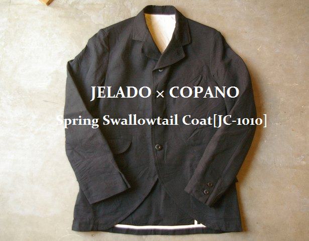 JELADO × COPANO Spring Swallowtail Coat入荷です!! 2013年3月12日 最終更新日時 : 2025年10月23日 mushmansblog JELADO × COPANO Presents!!Spring Swallowtail Coat[JC-1010]BLACK1800年後半から1900年代初頭に沈没した船から引き揚げた洋服を表現すべくデザイナーの手で染めや揉み洗いを行う拘りと独自の美しいパターンで世に生み出すブランド"COPANO"とJELADO "ANTIQUE GARMENTS"のダブルネームにより、1900年代アメリカの洋服の貴重な資料を参考にアメカジスタイルにも相性の良いサックコートタイプのJKTを製作。JELADO【ジェラード】Spring Swallowtail Coat[JC-1010]BLACKPrice ¥44,100-(TAX IN)ANTIQUE GARMENTSとCOPANOのコラボレーションアイテム。テーラードジャケットをCOPANO風の色気と懐かしさを感じる古さを合わせ持たせ、JELADOテイストの素材によって、レアなアンティークをデザインソースに作り上げた一着。細部にまで拘りを入れるのはやはりJELADO。裏パイピング始末は勿論の事…。ヨーク部分にはスレーキを配置して、着心地の良さとすべりの良さを実現。また、サラッとした生地感の裏地は、まさにこれからの季節ストレスのかかる部分だからこそ、手を抜けない重要部分ですマテリアルに使用されるのは黒のグログラン生地。グログラン生地とは経糸に細い糸、緯糸に太い糸を一度に数本づつ引き揃えにして打ち込み、撚り方向に太い畝を出した織物の事を指します。この、横の畝は、高くて丸みのあるのが特徴で、横に対してのハリがあるのが特徴です釦もオリジナルのデザインの入った釦を採用。全体の雰囲気に合うよう同色のBLACK釦が採用されます。小さな部分でありながら、釦一つで雰囲気はガラリと変わります。JELADOならではの空気感を感じてみてください着丈は少しショートにし、特筆すべきディテールとして、古いテーラードの雰囲気を演出するよう胸ポケットはくり抜き玉縁仕様となり、スワロウテイルの言葉通りに、着用したときに水鳥の羽が広がり、ヒップに向い綺麗な曲線を描く美しい曲線が美しいラインとなっているのが特徴ですこれからの季節にサラッと羽織る事が出来るシンプルでありながらデザインの強調された一着。JELADO × COPANOが生み出す、最高の一着を皆様のマストアイテムにしてみてくださいねJELADO【ジェラード】Spring Swallowtail Coat[JC-1010]BLACKどうぞ、よろしくお願いいたします \ 最新情報をチェック / FacebookXBlueskyHatenaCopy