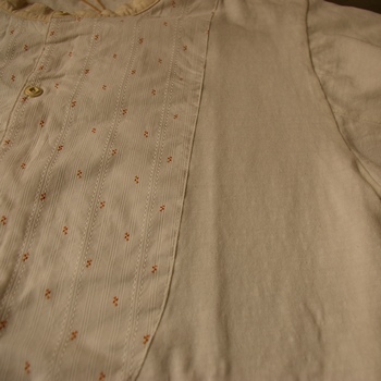 デザインのベースとなる【Bib Front】とは、胸元に装飾的な胸飾りや肩や首元からU型の別生地で縫製されたタイプのシャツ。