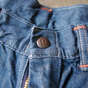 このボタンは通常の5ポケットデニムとは違いスナップ式のボタン。